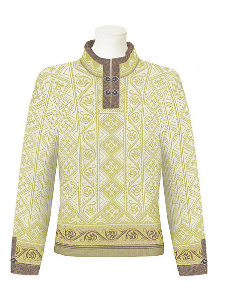 This magnificent sweater is named after the charming mountain village called Voss in the Western part of Norway. Voss is located between Norways two most famous fjords: the Hardangerfjorden and Sognefjorden. In wintertime, Voss is a paradise for wintersports enthusiasts with its steep mountains and the variety of slopes for both cross country and alpine skiing. Many of Norways best wintersports athletes come from Voss. The local variant of Norways national Costume, the Voss bunad, is very popular and is by many ranked as the most beautiful in Norway. It is common that brides wear a special bridal version of the bunad and this is the inspiration behind our sweater Voss. Elements from the beaded pattern on the chestcloth and the bridal crone are incorporated in the design, as well as patterns from the shirt and apron embroidered in the special Hardanger technique. The heart is a popular symbol for the bridal costume and is often used both in the beaded pattern, the silver jewelry and the belt buckle. Thus it is natural that we use it in our special made clasps in the neck and on the cuffs.