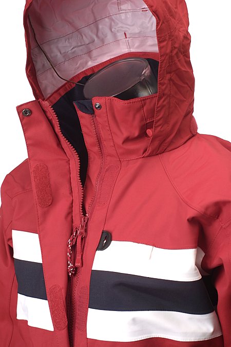 Ideal for variable conditions at sea, this durable, waterproof and breathable jacket combines feminine design with the functionality of a hide-away hood, water resistant pockets and double cuffs for added protection in rough waters.