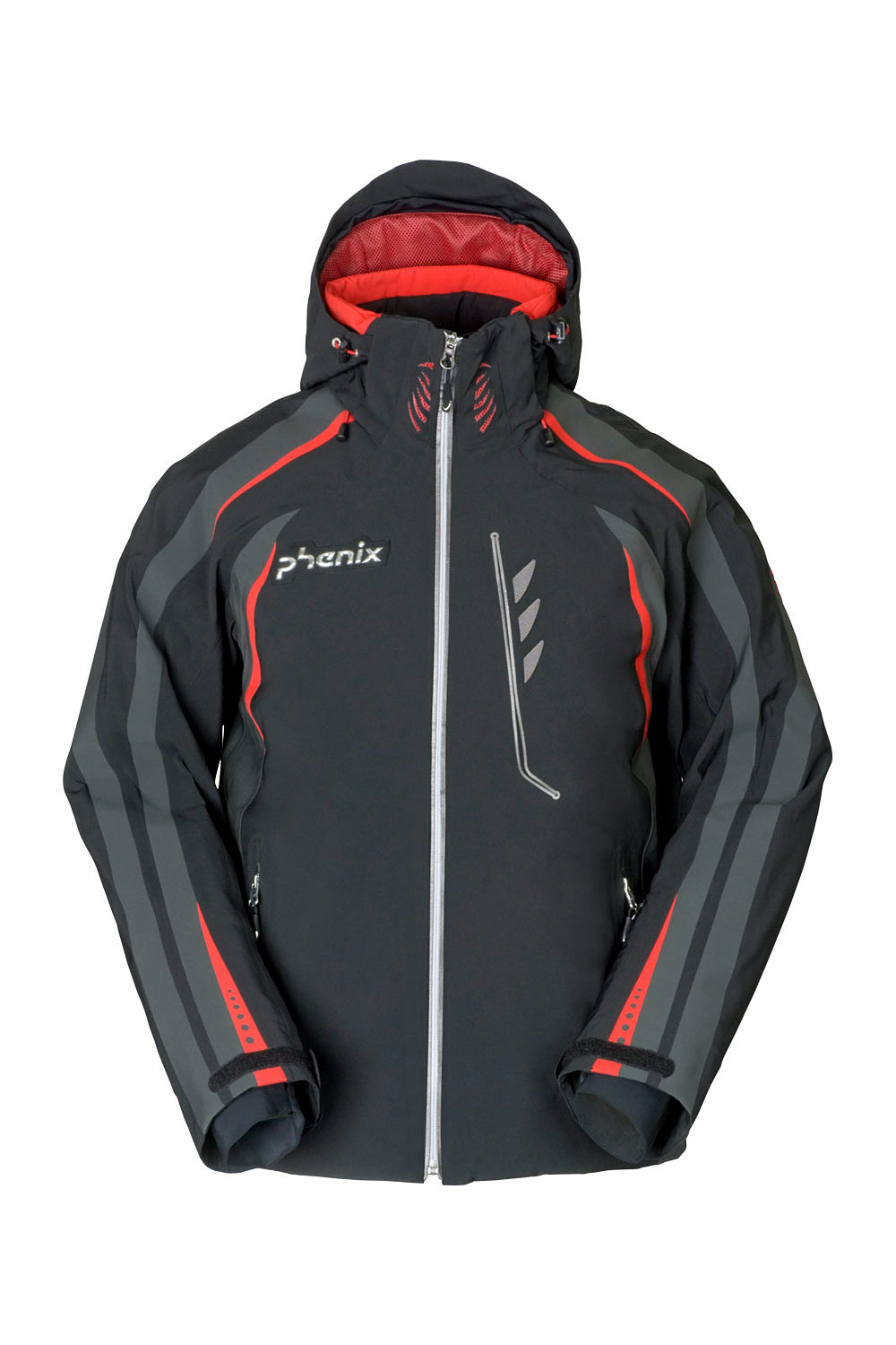 For the ultimate in performance ski in the Phenix Thunderbird ski jacket. The Thunderbird is fully waterproof, breathable, and insulated for on-hill warmth. The stretchy 4-way fabric allows for full range of motion in a fitted jacket, offering low-bulk performance for the most athletic of skiers. A ventilated neck can be zipped up high without restricting air intake or fogging goggles up. The underarm ventilation systems allows for a quick cool down and keeps cool air flowing even when the heat is on. Ski this season in a high performance jacket, ski in the Phenix Thunderbird ski jacket.