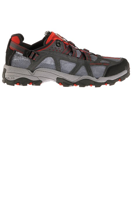 The Salomon Men's Techamphibian Sandal combines the best of both worlds between the shoe and the sandal. It's Vent 180 degree design, synthetic quick drying, breathable and Anti-debris mesh provide superior drainage and venting to keep your feet from looking like grandpa's prunes. Salomons' Sensifit design,Quickfit Lacing System combined with an ajustable heel strap and patented convertable heel provide you with comfort and convenience. Also Salomon's Non-marking Water Contagrip outsole and rubber toe cap help protect you and keep you grounded...well, at least your feet. With the sporty and versatile Salomon Techamphibian sandal you can go explore your world on land and in water.