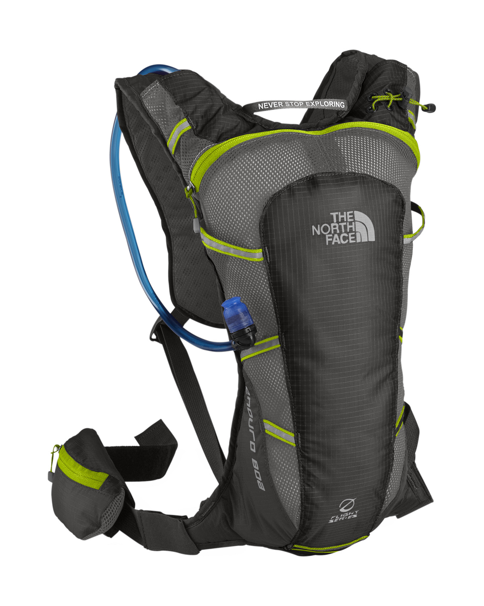 Thirsty runners listen up: This new technical hydration pack minimizes abrasion at the shoulders and back by redistributing weight across the upper body; holding weight at the sternum instead of under the arms, and utilizing Velcro closures instead of skin-irritating clasps. Soft mesh construction increases airflow, while cutting-edge Boa system compresses its 1.5-liter reservoir by tightening ultralight strands with a turn of a knob.