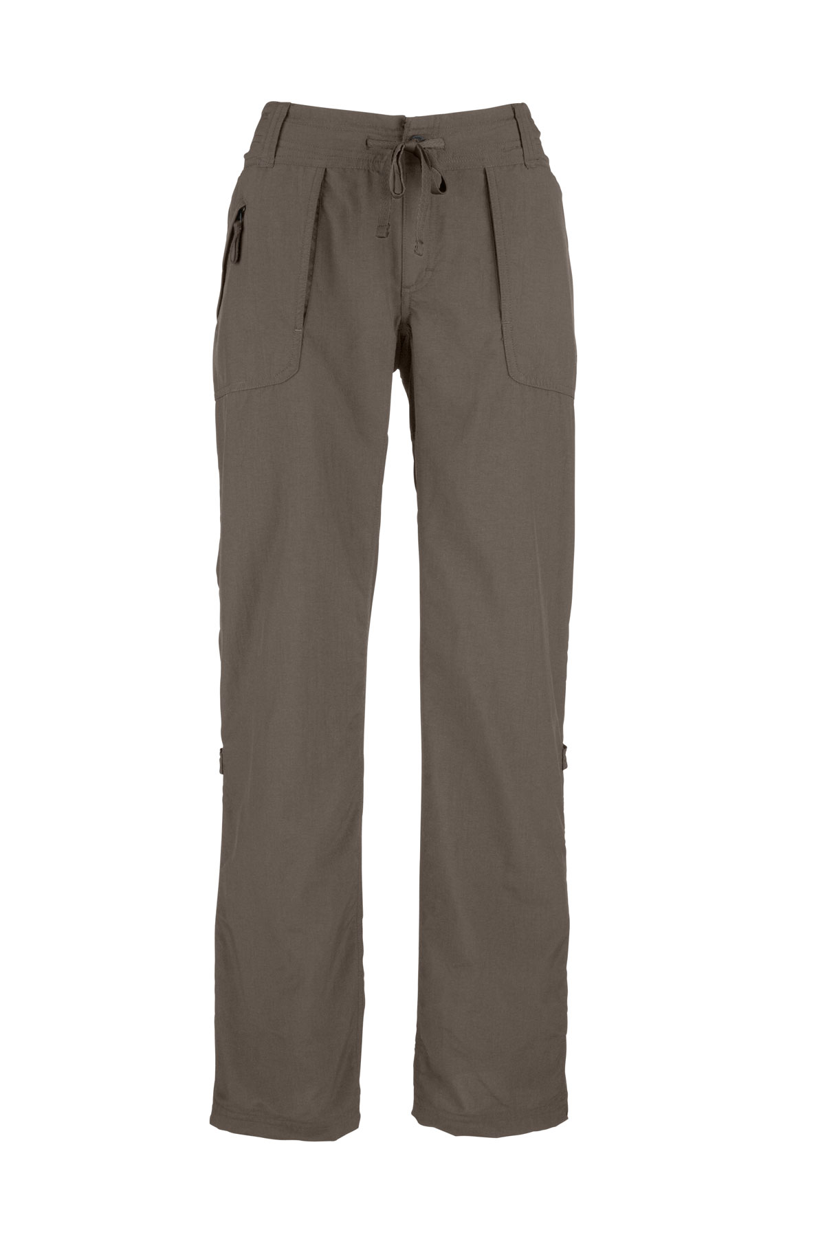 New versatile hiking or bouldering pant features a lightweight, nylon-ripstop fabric that provides mobility and durability you crave on the trail. Constructed waistband with drawstring provides a secure, comfortable fit. Leg roll-up feature morphs pant into long capri.