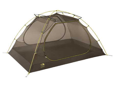 Whether you're searching for a spacious two person tent or a perfectly sized three person tent, The North Face Roadrunner 33 tent is the best tent around. The Roadrunner comfortably sleeps three adult campers and offers plenty of overhead space due to the brow poles that pull the tent's sides out. Two doors eliminate the need to crawl over your camping partner to get out, the fly also has two doors. An overhead pocket stores smaller items like headlamps, books, and your favorite teddy bear. The Roadrunner 33 makes for the best backpacking tent and car camping tent around.