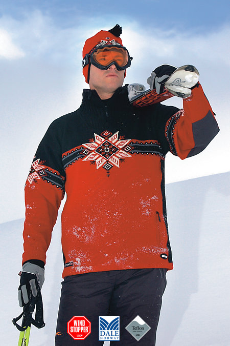 In celebration of their 125th year Anniversary, Dale of Norway proudly presents Dale Sport Collection; the most dynamic collection ever. As the new flag ship in the Dale Sport Collection, the Storetind is made for extreme endeavors. Lined with GORE Windstopper, the storetind sweater is 100% windproof, yet highly breathable. Its yarn has been treated with Teflon, which increases the durability and makes the sweater snow and water repellent. The Storetind is designed to ensure warmth in nearly every situation. Its neck is lined with 100% windproof fleece, preventing the winter's chill from entering the sweater. Snow gloves and a snow stopper will keep the snow at bay. The Storetind's ventilation system will assist in regulating body temperature while engaging in physical activity.