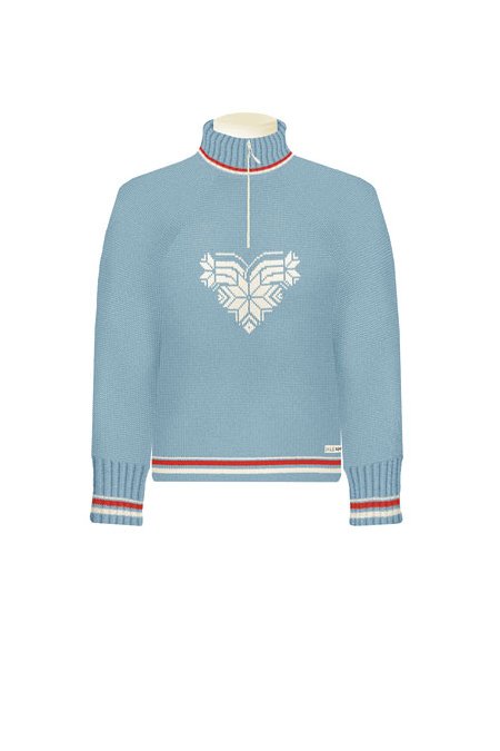 Team Norge 2006, the official sweater for the Norwegian Ski Teams during the 2005-06 winter season celebrates Dale's 50th Anniversary as supplier for the Norwegian Olympic Team. The Team Norge 2006 design is a modern way of using traditional design elements. Both the masculine and feminine design incorporates the traditional eight-leaf rose, which plays an important role. The eight-leaf rose is combined with the mountains in the Dale of Norway logo, and on the feminine sweater this design element shapes a heart. Both designs are delivered in 3 sporty colors and have embroidery marking the 50th Anniversary as supplier to the Norwegian Olympic Team.