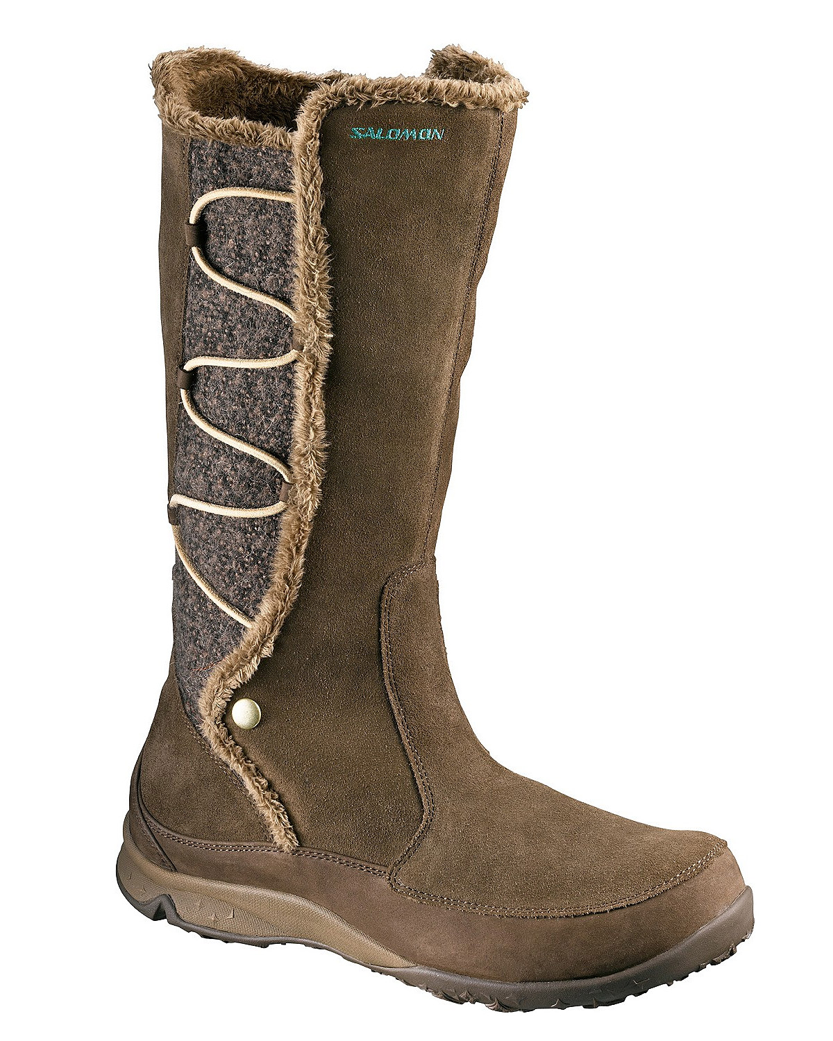 Cozy up this winter in Salomon's Emmy suede leather winter boot. The Emmy rises mid shin, offer protection from the elements. A side zipper makes the shoes easy to get off and on, and also makes tucking pants in easier than usual. Stay stylish and warm this winter, venture out in the Emmy.